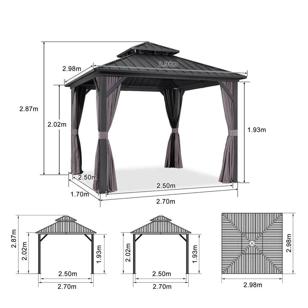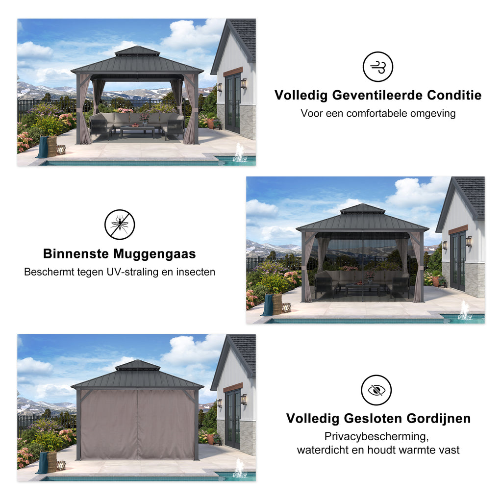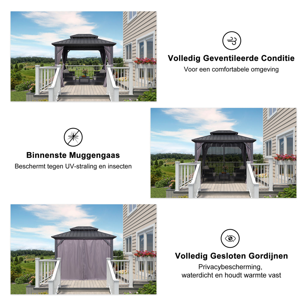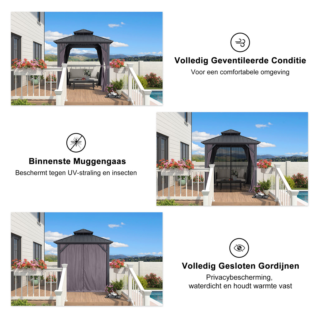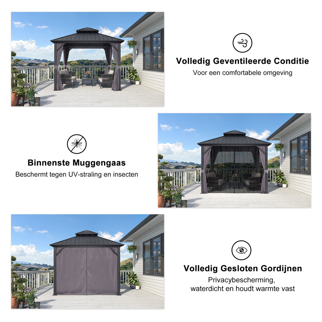 PURPLE LEAF Hardtop Prieel Basismodel Gegalvaniseerd Stalen Dak Aluminium Frame met Gordijn en Klamboe – Grijs